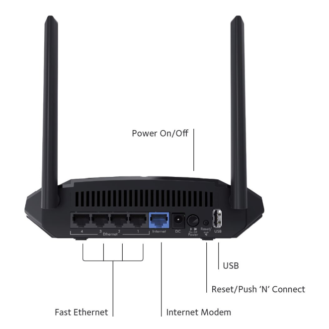 El NETGEAR R6120 cuenta con 5 puertos Ethernet LAN y 1 puerto Ethernet WAN.