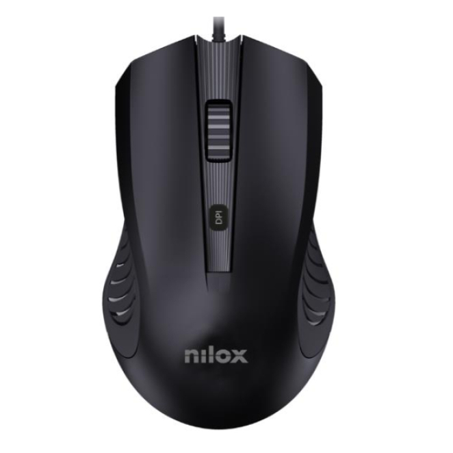 Nilox MOUSB1013 ratón de oficina con conexión USB tipo A, sensor óptico de 2400 DPI y diseño ergonómico.