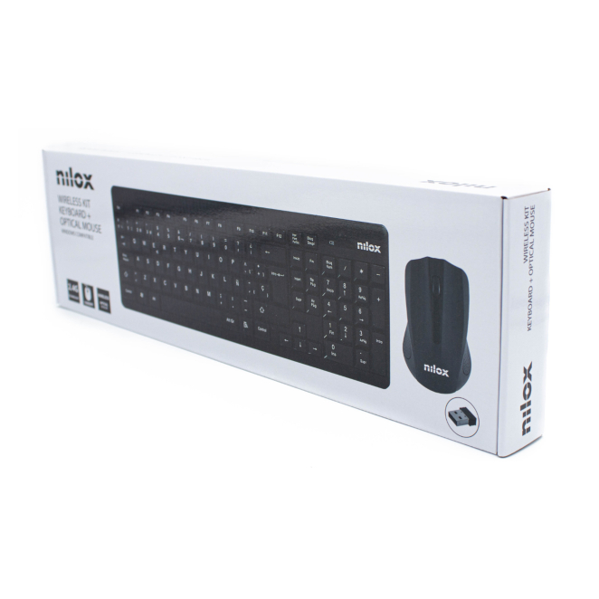 Aquí tienes algunas de las preguntas frecuentes sobre el Nilox Combo de ratón más teclado wireless: Este combo está diseñado para ser compatible principalmente con sistemas operativos Windows, aunque puede funcionar con Mac OS con funcionalidad limitada. Sí, todos los teclados Nilox distribuidos oficialmente incluyen la tecla Ñ y una disposición de teclas en español. El combo utiliza un nano receptor que se conecta a un puerto USB de tu ordenador, permitiendo una conexión plug and play sin necesidad de software adicional. El teclado y el ratón inalámbricos Nilox funcionan con baterías AAA no incluidas. Por supuesto, es ideal para configuraciones de oficina gracias a su diseño ergonómico y su conectividad inalámbrica que asegura una experiencia de trabajo cómoda y sin cables. Uso recomendado Universal Tecnología de conectividad Inalámbrico Interfaz del dispositivo RF inalámbrico Diseño de teclado QWERTY Idioma del teclado Español Formato del teclado Completo (100%) Teclado numérico Sí Retroiluminación No Estilo de teclado Derecho Descansa muñecas No Color del producto Negro Ratón incluido Sí Tecnología de detección de movimientos Óptico Resolución de movimiento 1000 DPI Sistema operativo Windows soportado Windows 10, Windows 7, Windows 8, Windows XP