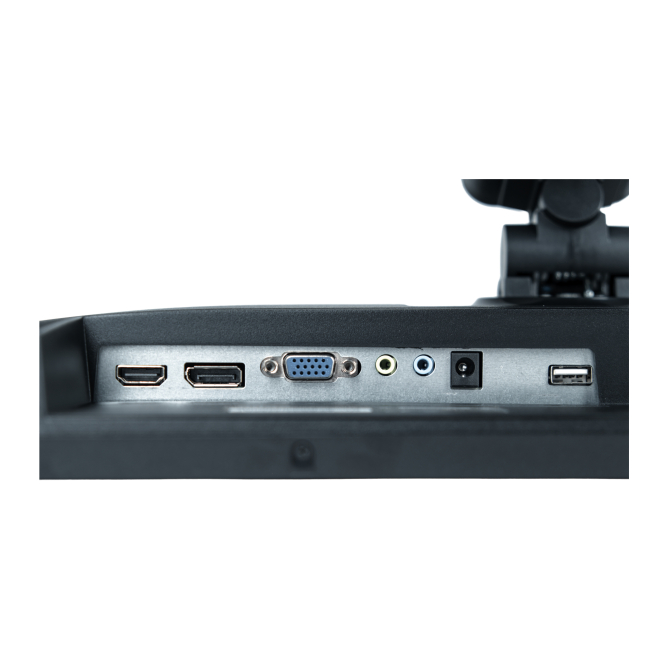El monitor incluye HDMI, DisplayPort y VGA, además de puertos USB necesarios para la funcionalidad de la cámara web.