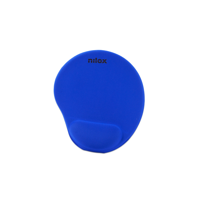 Vista de la Nilox Alfombrilla ergonómica en color azul, ideal para mejorar la comodidad al usar el ratón. SKU: NXMPE02