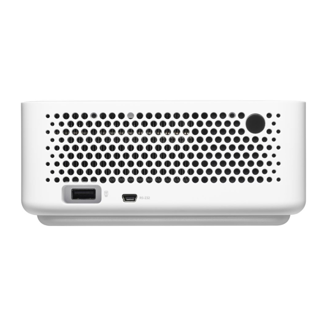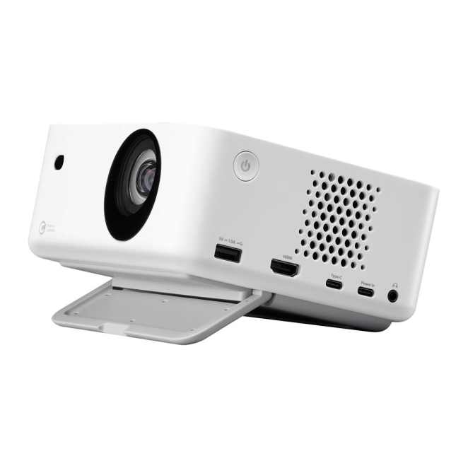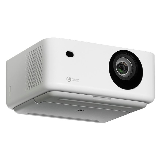Ligero y compacto, fabricado con materiales reciclados, este proyector es fácil de transportar y respetuoso con el medio ambiente.