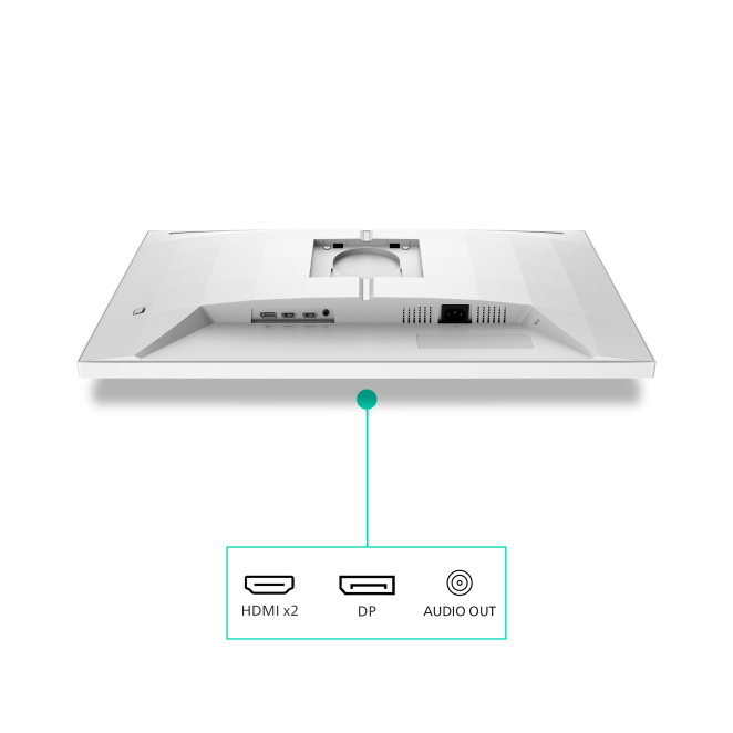 El monitor cuenta con 2 puertos HDMI, 1 DisplayPort y una salida para auriculares, permitiendo múltiples opciones de conectividad.