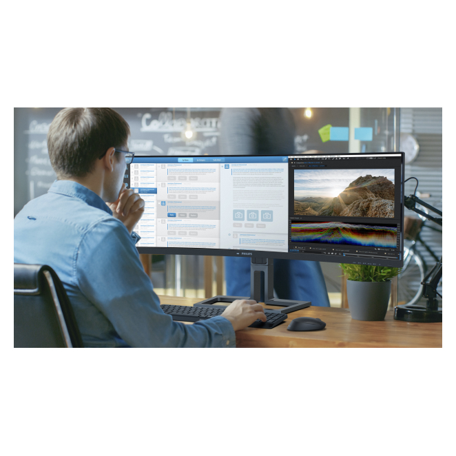 Elegir el Philips 6000 series 45B1U6900C/00 LED display es optar por calidad y rendimiento. A continuación, presentamos algunas de las razones más destacadas para adquirir este monitor: Su resolución UltraWide Dual Quad HD y soporte HDR garantizan imágenes nítidas y colores vibrantes. Con puertos USB-C, HDMI y DisplayPort, es fácil de conectar a cualquier dispositivo. El soporte ajustable en altura y inclinación permite configuraciones personalizables para cualquier necesidad. Altavoces incorporados y múltiples opciones de visualización como Picture-by-Picture y Picture-in-Picture. Tecnología anti-parpadeo y modo LowBlue que cuidan la vista durante usos prolongados.