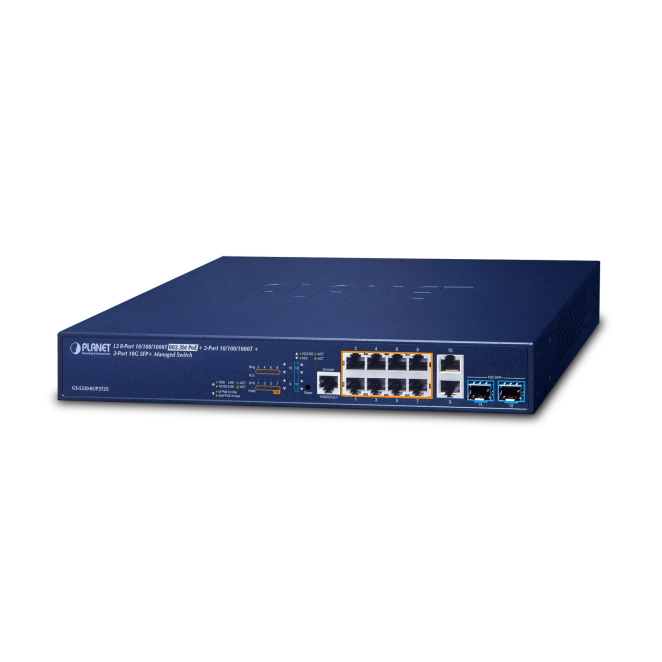 PLANET GS-5220-8UP2T2X switch Gestionado L3 Gigabit Ethernet (10/100/1000) Energía sobre Ethernet (PoE) 1U Azul