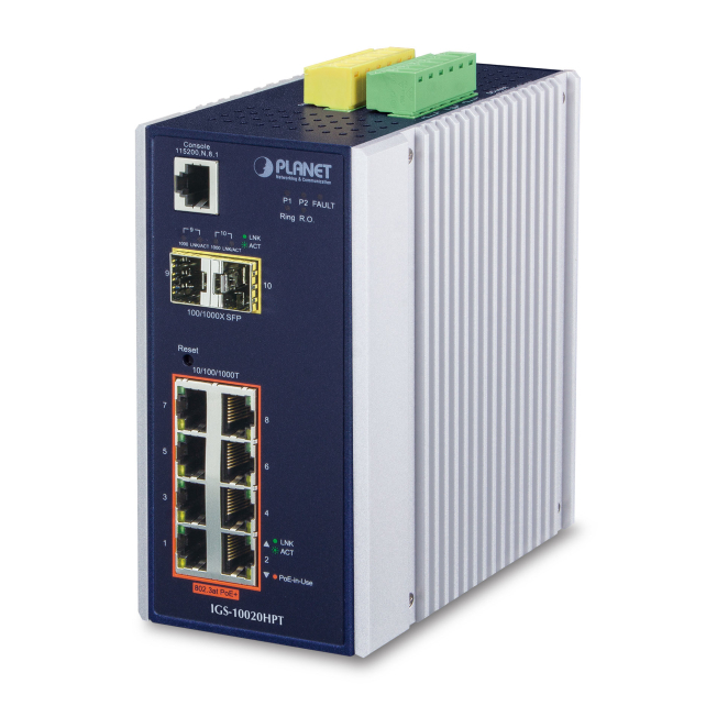 El PLANET IGS-10020HPT puede operar en un rango de temperatura de -40°C a 75°C, haciéndolo ideal para entornos industriales y exteriores.