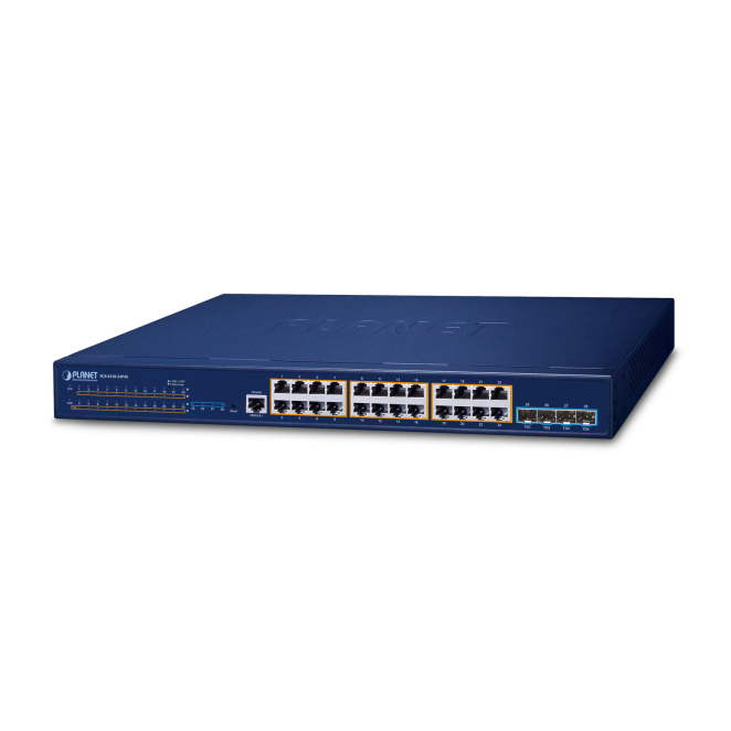 Imagen del switch gestionado PLANET Layer 3 con 24 puertos 10/100/1000T, SKU SGS-6310-24P4X