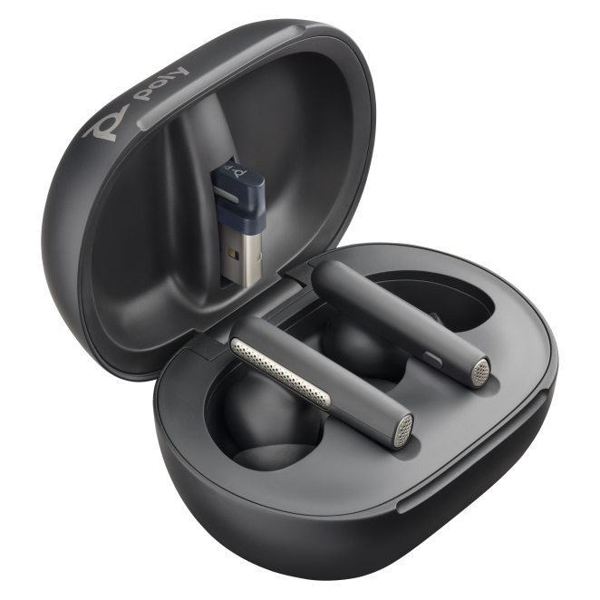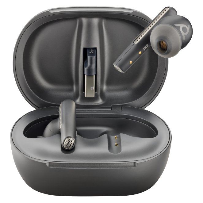 Poly Intrauriculares Voyager Free 60+ UC color Negro Carbono +Adaptador USB-A BT700 +Estuche de carga con pantalla táctil