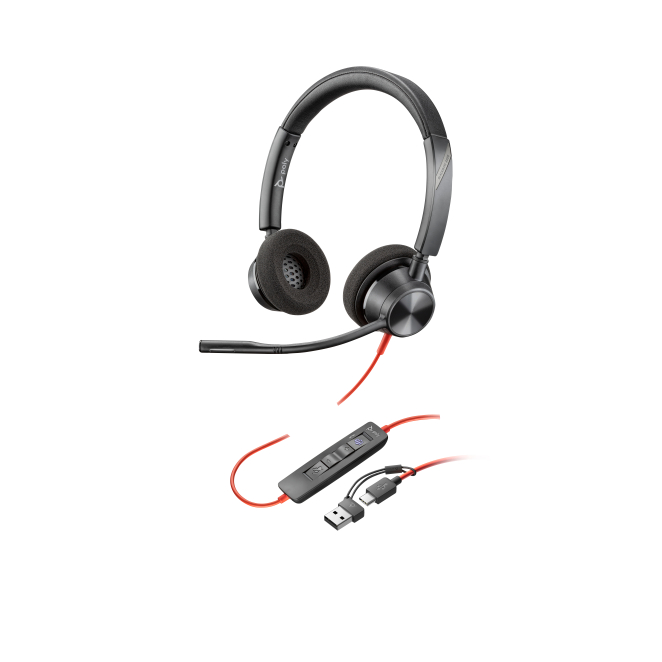 Auriculares estéreo Poly Blackwire 3320 con certificación Microsoft Teams USB-C + Adaptador USB-C/A