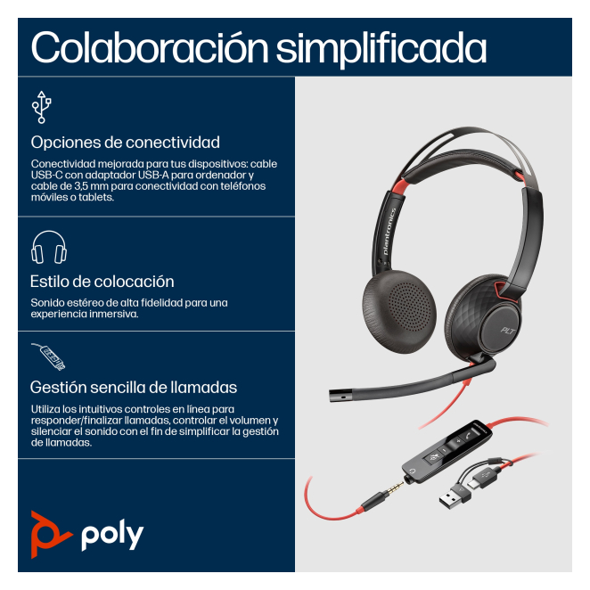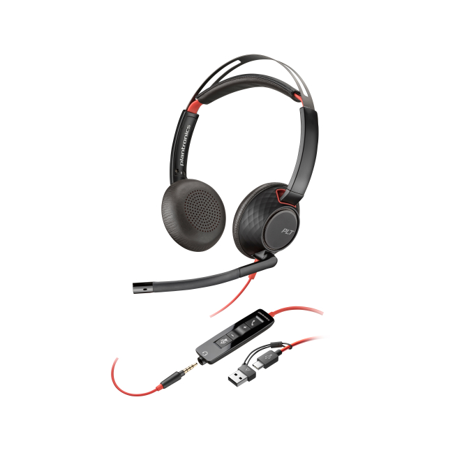 Poly Auriculares Blackwire 5220 estéreo USB-C + conector de 3,5 mm + adaptador USB-C/A (paquete)