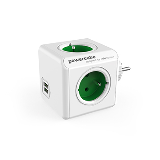 Base múltiple Allocacoc PowerCube Original con 4 salidas AC, puerto USB, para uso interior. Color azul. SKU: 2202GN/FROUPC