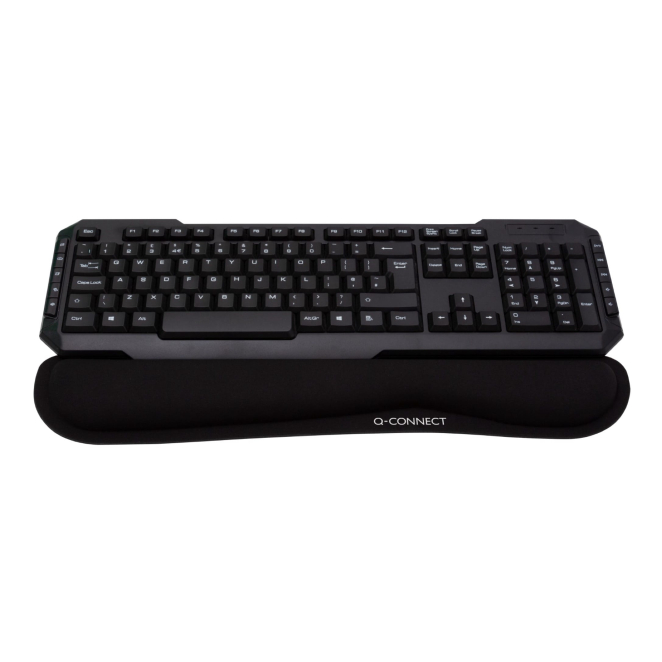 El descansa muñecas Q-CONNECT KF03684 está fabricado con tela, espuma y caucho de alta calidad para proporcionar durabilidad y comodidad.
