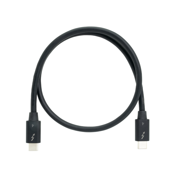 Imagen del cable QNAP Thunderbolt CAB-TBT4-0M5 negro de 0,5 metros con velocidad de 40 Gbit/s