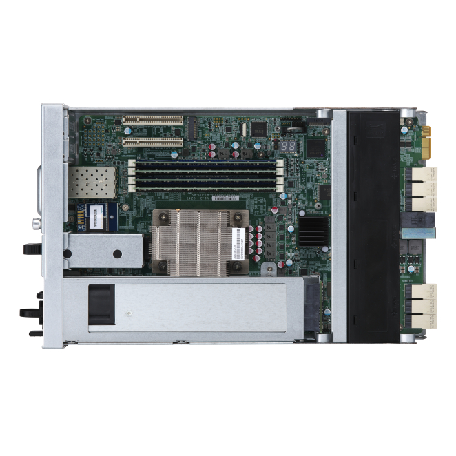 Soporta redes de alta velocidad 25GbE/40GbE y permite la expansión de almacenamiento hasta 24 unidades HDD o SSD.