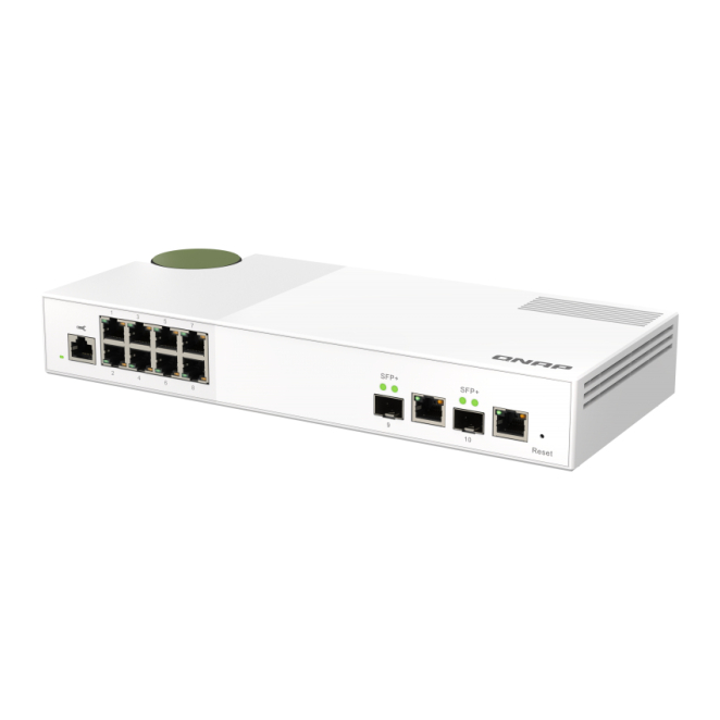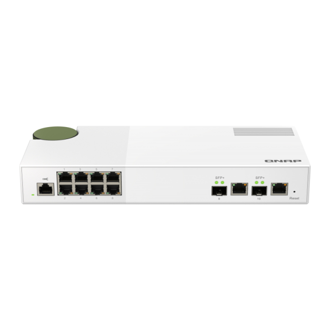 El QNAP QSW-M2108-2C es un switch gestionado L2 diseñado para ofrecer una solución avanzada y flexible para diversas necesidades de redes empresariales. Con un diseño moderno y compact, cuenta con ocho puertos de 2,5 Gigabit y dos puertos combinados SFP+/RJ45 10GbE. Este switch QNAP QSW-M2108-2C es idónea tanto para entornos profesionales como domésticos que requieren alta velocidad de conexión y una administración de red eficiente. Su interfaz de usuario web intuitiva y la compatibilidad con tecnologías 10GbE y NBASE-T garantizan una gestión de red eficiente y una óptima asignación del ancho de banda.