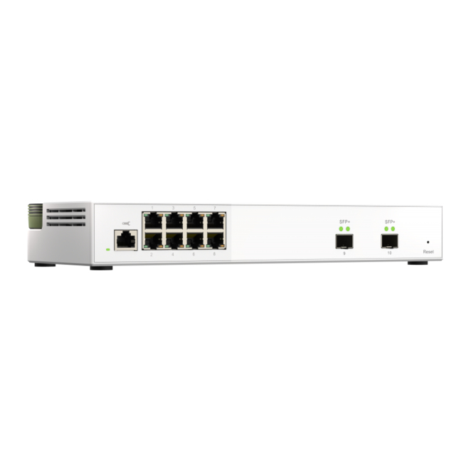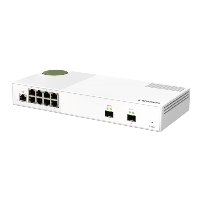 El QNAP QSW-M2108-2S es un switch gestionado de Capa 2 diseñado para brindar una solución completa y flexible para redes eficientes. Con ocho puertos de 2.5 Gigabit y dos puertos combinados SFP+ 10GbE, el QSW-M2108-2S permite la implementación en entornos de red híbrida de alta velocidad. Este conmutador QNAP es ideal para profesionales que no pertenecen al sector TI, ofreciendo una interfaz de usuario amigable para la gestión de su red. Mejorar la conectividad de su red nunca ha sido tan sencillo y rentable gracias al QSW-M2108-2S.