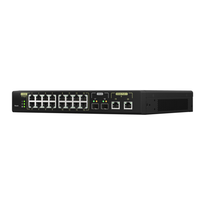 El QNAP QSW-M2116P-2T2S no solo garantiza una conexión de alta velocidad y fiabilidad, sino que también ofrece una administración de red avanzada. Gracias a sus puertos 10GbE y 2,5GbE, asegura una transmisión rápida y eficiente, ideal para tareas que requieren un gran ancho de banda. Además, el switch es compatible con PoE, permitiendo la alimentación eficiente de diversos dispositivos desde una sola fuente. La interfaz web del QNAP Switch System (QSS) facilita a los administradores de TI la gestión de la red, mejorando significativamente la eficiencia operativa.