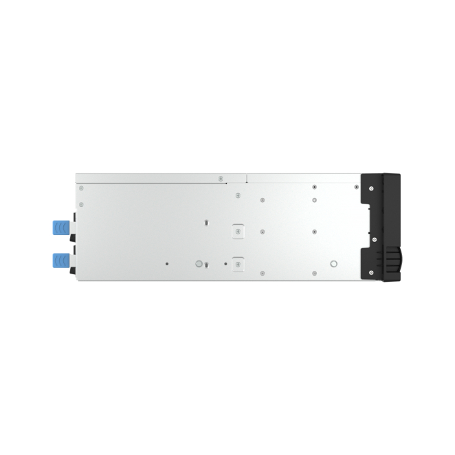 La QNAP TL-R1600PES-RP se alimenta a través de corriente alterna con un voltaje de entrada de 100 – 240V y una salida de 12V.