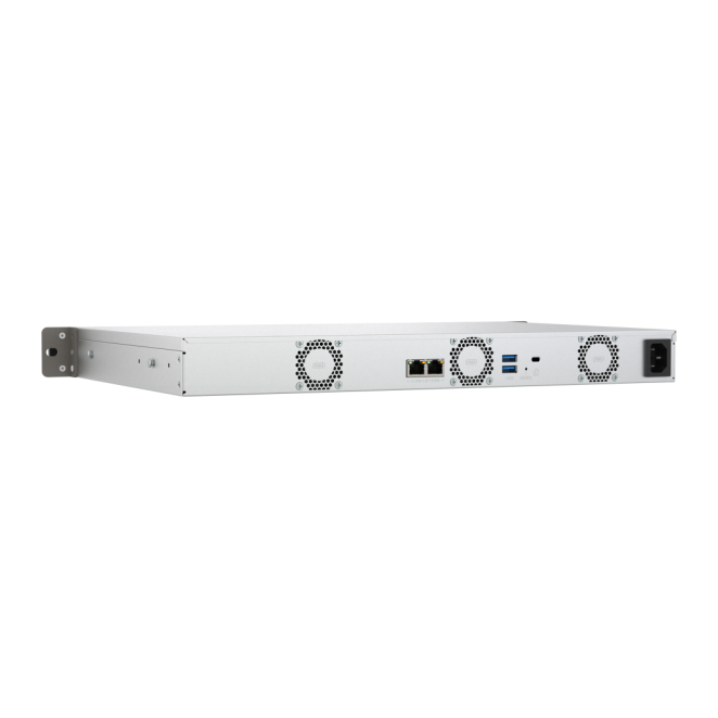 El QNAP TS-433eU no incluye unidades de almacenamiento instaladas de fábrica, pero soporta hasta cuatro unidades, ya sean HDD o SSD. Sí, el diseño de bastidor (1U) del QNAP TS-433eU permite una integración sencilla en racks estándar, optimizando el espacio disponible. El QNAP TS-433eU es ideal para pequeñas y medianas empresas que buscan una solución eficiente y robusta para la gestión y almacenamiento de datos. El QNAP TS-433eU utiliza el sistema operativo QNAP Turbo System, que proporciona una interfaz de usuario intuitiva y múltiples funcionalidades avanzadas. Sí, el QNAP TS-433eU tiene un servidor FTP incorporado, lo que facilita la transferencia y gestión de archivos a través de la red. Interfaz de unidad de almacenamiento SATA Compatibilidad con RAID No Receptáculos de unidades hot-swap Sí Unidades de almacenamiento instaladas No Tipo de unidades de almacenamiento instaladas No Tipos de unidades de almacenamiento admitidas HDD & SSD Capacidad de almacenamiento total instalado 0 TB Número de unidades de almacenamiento compatibles 4 Fabricante de procesador ARM Familia de procesador Cortex-A Modelo del procesador Cortex-A55 Frecuencia del procesador 2 GHz Número de núcleos de procesador 4 Memoria interna 4 GB Ethernet Sí Ethernet LAN, velocidad de transferencia de datos 1000 Mbit/s, 2500 Mbit/s Conexión de redes Sí Ethernet LAN (RJ-45) cantidad de puertos 2 Puerto USB Sí Tipo de chasis Bastidor (1U) Color del producto Negro Tipo de enfriamiento Activo Número de ventiladores 3 Ventilador(es) Diámetro de ventilador 40 mm Ranura para cable de seguridad Sí Tipo de ranura de bloqueo del cable Kensington Indicadores LED Estado, LAN, Unidad de disco duro, USB Tipo NAS Clase del dispositivo Pequeñas y medianas empresas Vibrador Sí Botón de restaurar Sí Interruptor de encendido/apagado integrado Sí Servidor FTP incorporado Sí Navegador compatible Microsoft Internet Explorer 10+, Mozilla Firefox 8+, Apple Safari 4+, Google Chrome Repuesto en caliente Sí Compartir carpeta CIFS/SMB Sistema operativo instalado QNAP Turbo System Versión de sistema operativo 4,1 Sistema operativo Windows soportado Si Sistema operativo Linux soportado Si Sistema operativo MAC soportado Si Ubicación de fuente de alimentación Integrado Número de fuentes de alimentación 1 Voltaje de entrada AC 100-240 V Capacidad de la fuente de alimentación (PSU) 60 W Consumo energético 23.74 W Consumo energético (en suspensión) 9.32 W Voltaje del ventilador 12 V Ancho 430 mm Profundidad 292.3 mm Altura 292.3 mm Peso 4010 g Peso del paquete 5900 g Intervalo de temperatura operativa 0-40 °C Intervalo de temperatura de almacenaje -20-70 °C Intervalo de humedad relativa para funcionamiento 5-95 %