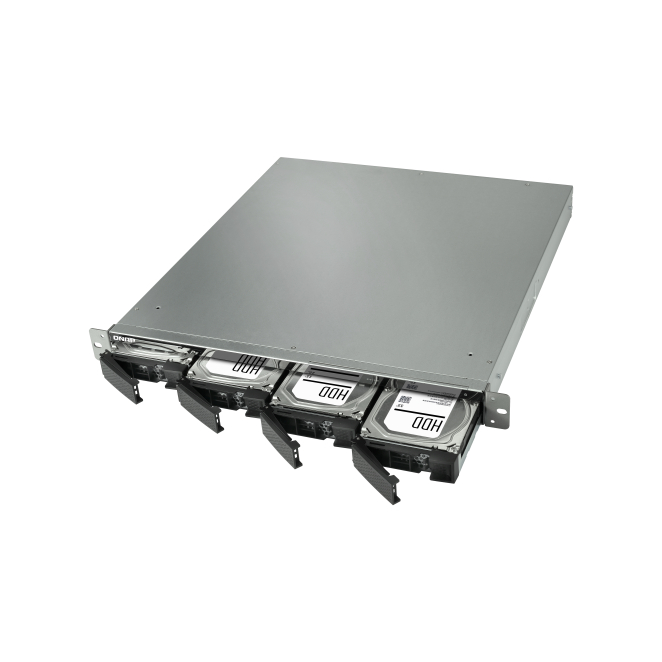 Flexibilidad de Almacenamiento: Soporte híbrido para HDD y SSD, optimizado con tecnología Qtier™ para organización por niveles y almacenamiento en caché.