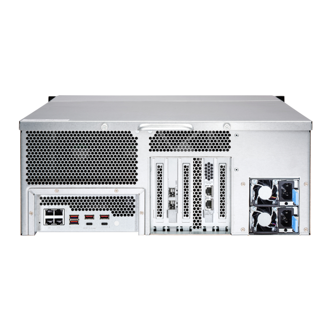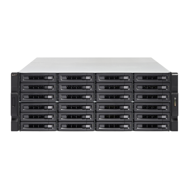 QNAP TS-h2483XU-RP NAS de bastidor (4U) en color negro con procesador Intel Xeon E-2236 y 128 GB de memoria DDR4, SKU TS-H2483XU-RP-E2236-128G