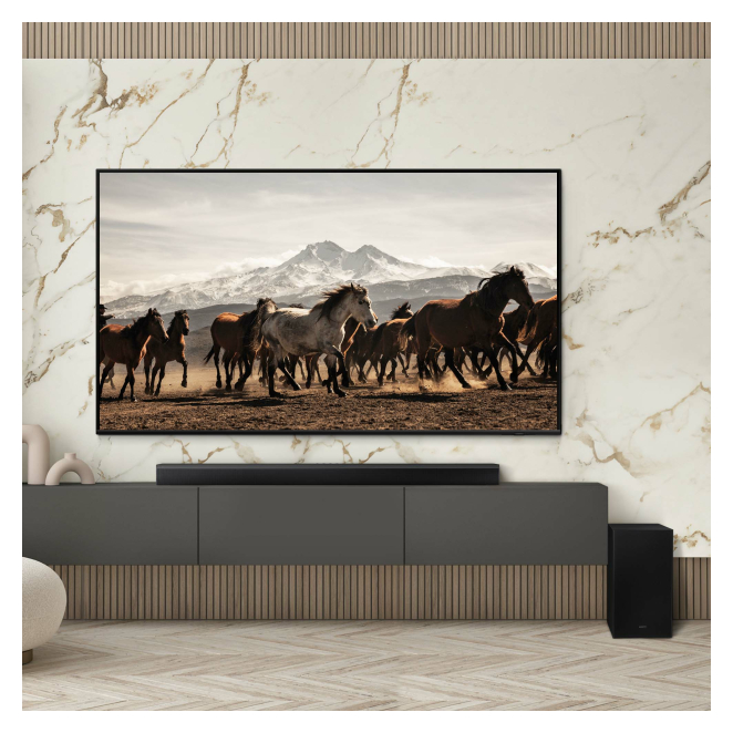 Samsung HW-B750D ofrece múltiples ventajas que van más allá de un simple aumento del volumen. Gracias a su tecnología Dolby Digital 5.1 y DTS Virtual:X, experimentarás un sonido 3D envolvente, ideal para sumergirte totalmente en tus películas y programas de TV favoritos. Además, el subwoofer incorporado y el modo Bass Boost garantizan graves adicionales para un sonido más lleno y dinámico. La conectividad sin cables, gracias al Bluetooth 4.2, hace que la instalación sea sencilla y limpia, eliminando la necesidad de múltiples cables. La función de Adaptive Sound, optimizada por IA, ajusta automáticamente el sonido para adecuarse a cada tipo de contenido, brindando diálogos claros y detalles más definidos.