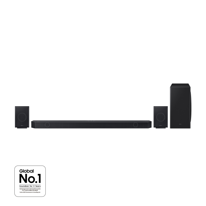Imagen de la barra de sonido Samsung HW-Q930D en color negro con 9.1.4 canales y tecnología Dolby Atmos, SKU HW-Q930D/ZF Este producto se puede comprar bajo demanda. Financiado desde: 57,25 € /mes Solicita información en caso de necesitar envío urgente. Métodos de pago: Samsung HW-Q930D Negro 9.1.4 canales La Samsung HW-Q930D Negro 9.1.4 canales es una barra de sonido impresionante diseñada para ofrecer una experiencia auditiva inigualable. Con **17 altavoces**, tecnología de conectividad inalámbrica y alámbrica y un **subwoofer inalámbrico**, este sistema de sonido envolvente promete transformar cualquier espacio en un cine de alta calidad. La tecnología **Dolby Atmos inalámbrica** y **Q-Symphony** aseguran un sonido sincronizado y envolvente, mientras que el **eARC** y la compatibilidad con **Apple AirPlay** y asistentes virtuales como **Alexa y Google Assistant** completan un paquete de características de última generación.