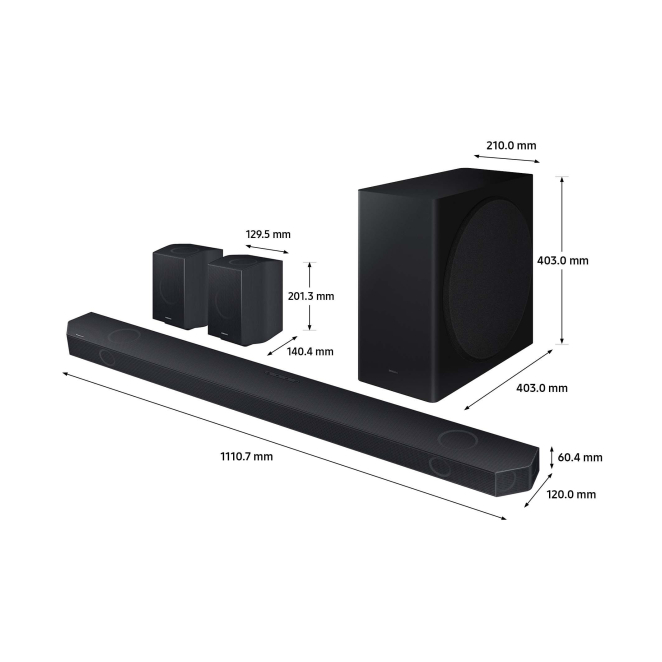 Para tu comodidad, aquí respondemos las preguntas más frecuentes sobre el Samsung HW-Q930D Negro 9.1.4 canales: Sí, aunque está optimizado para televisores Samsung, se puede conectar a cualquier televisor que soporte **HDMI eARC, Bluetooth**, o **Wi-Fi**. Sí, el Samsung HW-Q930D Negro 9.1.4 canales incluye todos los cables necesarios para una instalación completa. La función **Adaptive Sound** ajusta automáticamente el audio según el contenido que estés viendo para optimizar la calidad del sonido y hacerlo más claro y detallado. Sí, el Samsung HW-Q930D Negro 9.1.4 canales es compatible con **Amazon Alexa y Google Assistant**. Sí, la **barra de sonido Samsung HW-Q930D** incluye un kit de montaje en pared para facilitar su instalación. Color del producto Negro Canales de salida de audio 9.1.4 canales Canales de salida de audio 9.1.4 canales Decodificadores incorporados Dolby Atmos, Dolby Digital Plus, Dolby TrueHD, DTS:X Canal de retorno de audio (ARC) Sí Peso de la barra de sonido 5400 g Subwoofer incluido Sí Conectividad del altavoz de subgraves (subwoofer) Inalámbrico Peso de subwoofer 9800 g Color del producto Negro Formatos de audio soportados AAC, AIFF, ALAC, FLAC, MP3, OGG, WAV Montaje de pared Sí Tecnología de conectividad Inalámbrico y alámbrico Bluetooth Sí Versión de Bluetooth 5.2 Número de puertos HDMI 3 Entrada HDMI 2 Audio digital, entrada óptica 1 Consumo de energía (inactivo) 0.5 W Ancho 1110.7 mm Profundidad 120 mm Altura 60.4 mm Cables incluidos HDMI Mando a distancia incluido Sí Withdrawn from sale Withdrawn from sale Withdrawn from sale Disponible bajo demanda Withdrawn from sale Disponible bajo demanda Disponible bajo demanda Disponible bajo demanda ENVÍO EN 48H Realizamos envíos rápidos y seguros a toda España, garantizando la entrega en tiempo récord para tu tranquilidad. PAGO 100% SEGURO Ofrecemos métodos de pago seguros y certificados, para que compres con total confianza y sin preocupaciones. CAMBIOS Y DEVOLUCIONES Dispones de un proceso ágil y sencillo para cambios o devoluciones, asegurando tu satisfacción con cada compra realizada. ATENCIÓN AL CLIENTE Estamos disponible para resolver tus dudas rápidamente y ofrecerte soporte personalizado en todo momento.