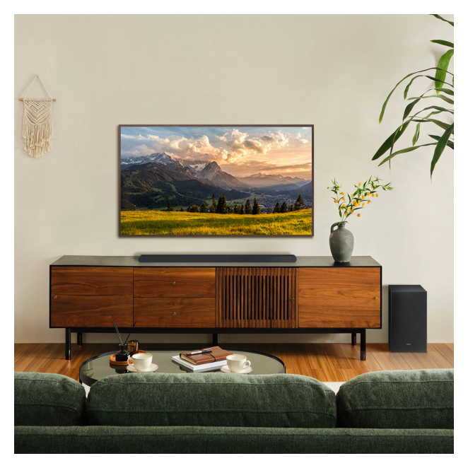 Disfruta de una experiencia de sonido cinematográfico sin la molestia de cables gracias a la primera tecnología de Dolby Atmos inalámbrica del mundo integrada en el Samsung HW-S700D. Mejora la calidad del sonido de tu TV Samsung al sincronizar la barra de sonido para una experiencia auditiva envolvente y armoniosa. Controla tu barra de sonido con tu voz a través de Amazon Alexa, Google Assistant o incluso Apple AirPlay.