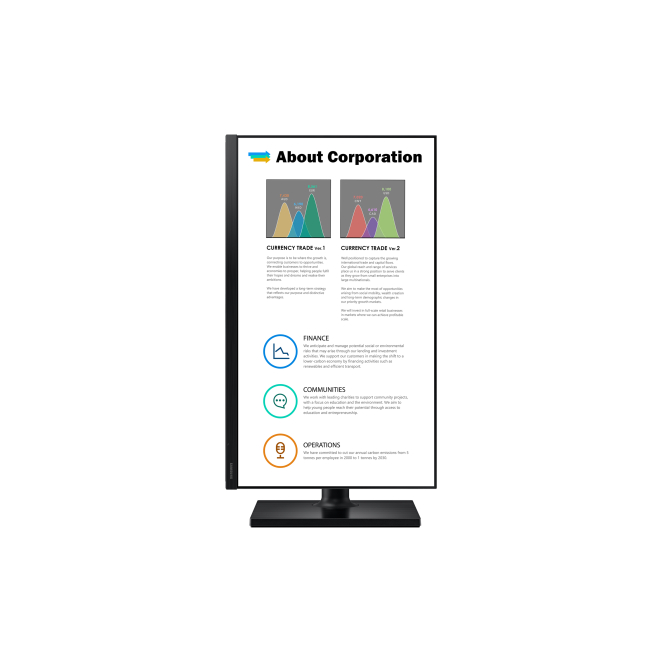 El Samsung T45F es ideal para usuarios profesionales que buscan una pantalla de alta calidad para sus tareas diarias. Diseñado para profesionales de oficina y creativos que requieren una visualización precisa de colores y detalles, este monitor es también perfecto para gamers gracias a sus funciones avanzadas como AMD FreeSync y un tiempo de respuesta rápido. Cualquier persona que necesite un monitor para PC que ofrezca claridad y confiabilidad encontrará en el Samsung T45F una excelente opción.