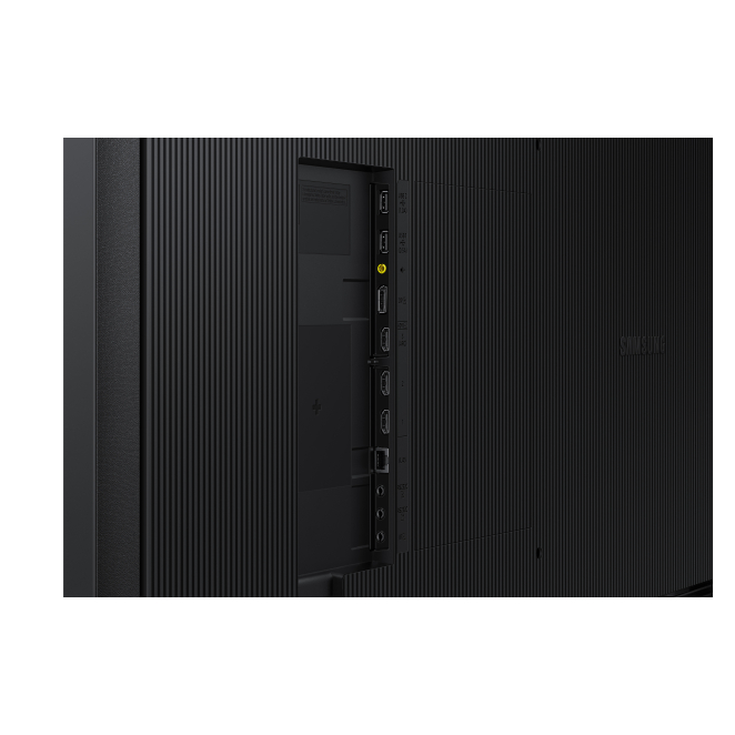 La Samsung QM43C cuenta con 3 puertos HDMI, 2 puertos USB, 1 puerto Ethernet (RJ-45), un puerto RS-232, y un puerto de datos infrarrojo.