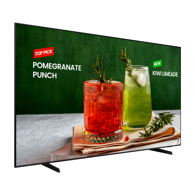 La Samsung BE98D-H ofrece múltiples beneficios para cualquier entorno profesional. Su capacidad de operar 16 horas al día durante 7 días a la semana garantiza que tu contenido estará siempre visible. El procesador Tizen integrado proporciona un rendimiento rápido y eficiente, lo que facilita el acceso y la gestión de contenido. Gracias a su resolución 4K Ultra HD y la tecnología LED, las imágenes y videos se muestran con una claridad y detalle incomparables. Además, su conectividad Wifi y opciones múltiples de puertos como HDMI y USB permiten una flexibilidad suprema en cuanto a fuentes de entrada. Todo esto hace que la pantalla plana de 98 pulgadas de Samsung sea ideal para señalización digital y aplicaciones publicitarias.