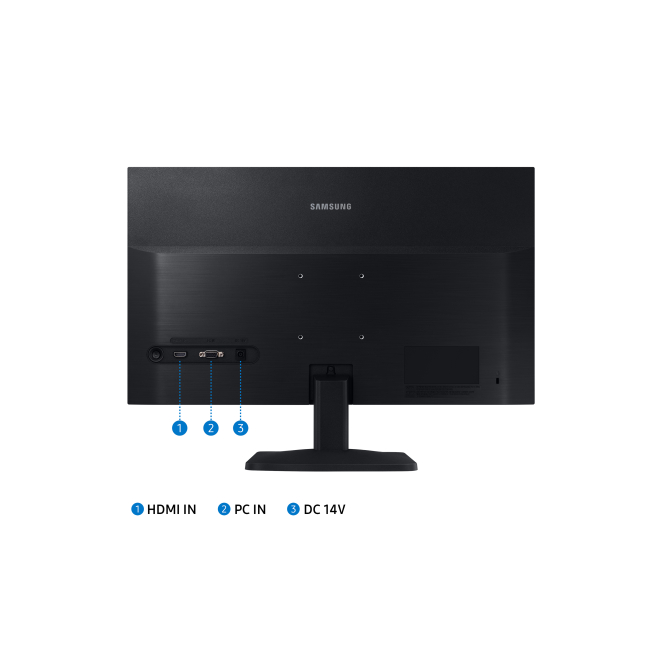 A continuación, respondemos algunas de las preguntas más frecuentes sobre el Samsung S33A: No, el Samsung S33A no cuenta con altavoces incorporados. No, este modelo no permite el ajuste de altura, pero sí permite la inclinación. El monitor Samsung S33A cuenta con un puerto HDMI y un puerto VGA (D-Sub). Sí, el Samsung S33A es compatible con montaje VESA, lo que permite colgarlo en la pared. No, este modelo no tiene compatibilidad con AMD FreeSync ni NVIDIA G-Sync. El Samsung S33A tiene una clase de eficiencia energética D (SDR). Sí, aunque no tiene características avanzadas como FreeSync o G-Sync, su tiempo de respuesta de 5ms y calidad de imagen lo hacen apto para gaming casual. Diagonal de la pantalla 24 " Resolución de la pantalla 1920 x 1080 Pixeles Tipo HD Full HD Relación de aspecto nativa 16:9 Tecnología de visualización LED Tipo de pantalla VA Pantalla táctil No Brillo de la pantalla (típico) 250 cd / m² Tiempo de respuesta 5 ms Forma de la pantalla Plana Razón de contraste (típica) 3000:1 Máxima velocidad de actualización 60 Hz Ángulo de visión, horizontal 178 ° Ángulo de visión, vertical 178 ° Número de colores de la pantalla 16,7 millones de colores Tamaño visible, horizontal 525.89 mm Tamaño visible, vertical 295.81 mm Diagonal de pantalla 60 cm Gama de colores estándar NTSC Cobertura NTSC (típica) 72 % NVIDIA G-SYNC No AMD FreeSync No Tecnología Flicker free (reduce el parpadeo de la pantalla) Sí Sistema operativo Windows soportado Windows 10 Altavoces incorporados No Cámara incorporada No Posicionamiento de mercado Consumidor Color del producto Negro Soporte desmontable Sí Color de pies Negro Conector USB incorporado No Cantidad de puertos VGA (D-Sub) 1 HDMI Sí Número de puertos HDMI 1 Versión HDMI 1.4 Salida de auriculares No montaje VESA Sí Interfaz de panel de montaje 75 x 75 mm Ajustes de altura No Ajuste de la inclinación Sí Ángulo de inclinación -5-21 ° Clase de eficiencia energética (SDR) D Clase de eficiencia energética (HDR) No disponible Consumo de energía (SDR) por 1000 horas 14 kWh Consumo energético 14 W Consumo de energía (inactivo) 0.3 W Consumo de energía (max) 18 W Consumo de energía (apagado) 0.3 W Voltaje de entrada AC 100 - 240 V Tipo de fuente de alimentación Externo Escala de eficiencia energética De la A a la G Código EPREL (Registro europeo de productos para el etiquetado energético) 938624 Intervalo de temperatura operativa 10-40 °C Ancho del dispositivo (con soporte) 550.9 mm Profundidad dispositivo (con soporte) 209.9 mm Altura del dispositivo (con soporte) 403.8 mm Peso (con soporte) 3100 g Ancho (sin base) 550.9 mm Profundidad (sin base) 30.4 mm Altura (sin base) 332.3 mm Peso (sin base) 2800 g Ancho del paquete 618 mm Profundidad del paquete 400 mm Altura del paquete 135 mm Peso del paquete 4500 g Stand incluido Sí Cables incluidos HDMI Longitud del cable 1.5 m