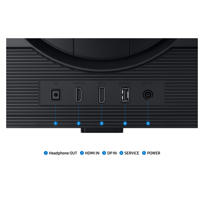 El Samsung G60F incluye puertos HDMI, DisplayPort, y salida de auriculares.
