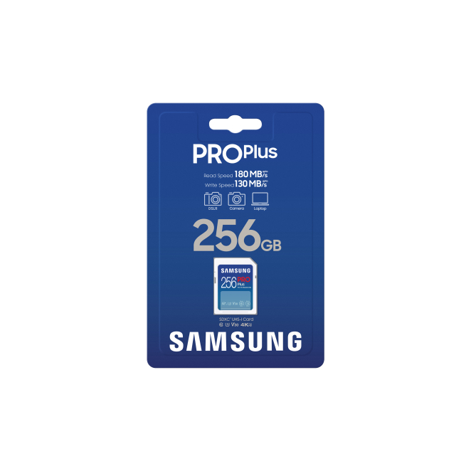 La Samsung PRO Plus MB-SD256S tiene una velocidad de lectura de 180 MB/s y una velocidad de escritura de 130 MB/s, ideal para transferir datos de forma rápida y eficiente.