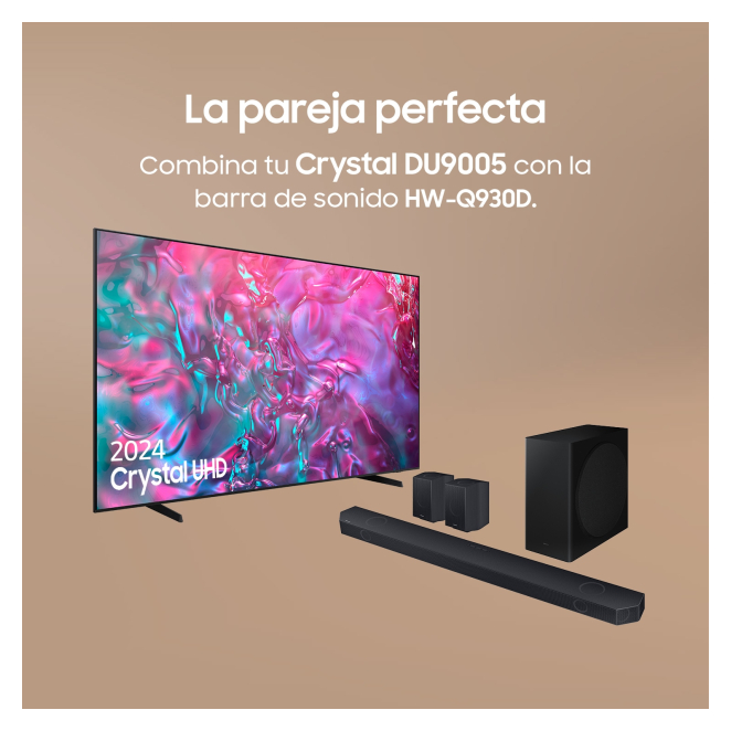 El Samsung TV DU9005 Crystal UHD 98” 4K Smart TV es ideal para entrañables noches familiares de películas, entusiastas del deporte que no quieren perderse ningún detalle, y gamers que buscan una experiencia de juego fluida y envolvente. Además, gracias a su interfaz Tizen, es perfecto para aquellos que necesitan una TV intuitiva y fácil de usar, con acceso a una variedad amplia de contenido y aplicaciones. Ya sea que busques un cine en casa o mejorar tus sesiones de gaming, este televisor es perfecto para cualquier usuario exigente.