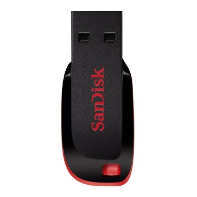 SanDisk Cruzer Blade unidad flash USB de 64 GB en colores negro y rojo, con puerto tipo A 2.0. SKU: SDCZ50-064G-B35