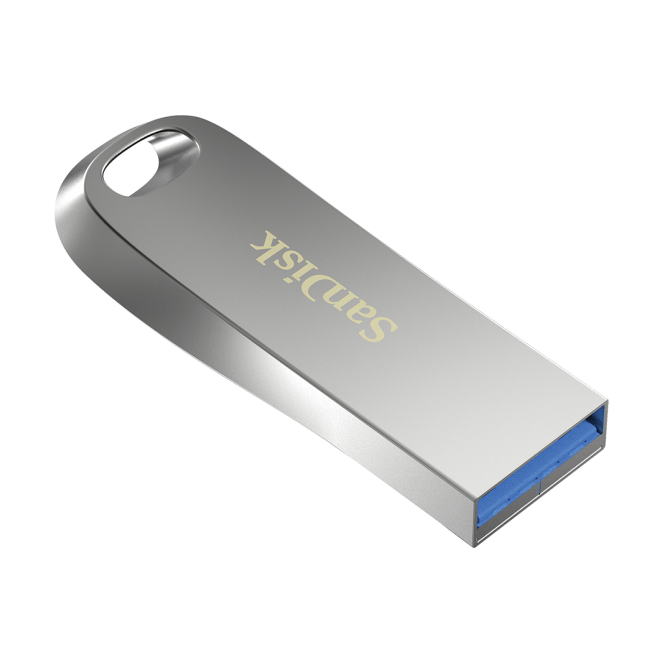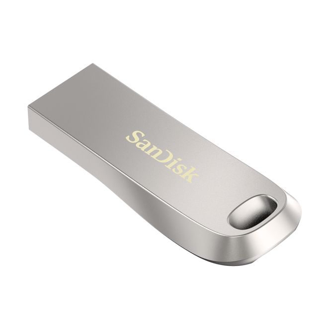 Unidad flash USB SanDisk Ultra Luxe con 128 GB de capacidad, conexión USB tipo A 3.2 Gen 1 y color plata, SKU SDCZ74-128G-G46