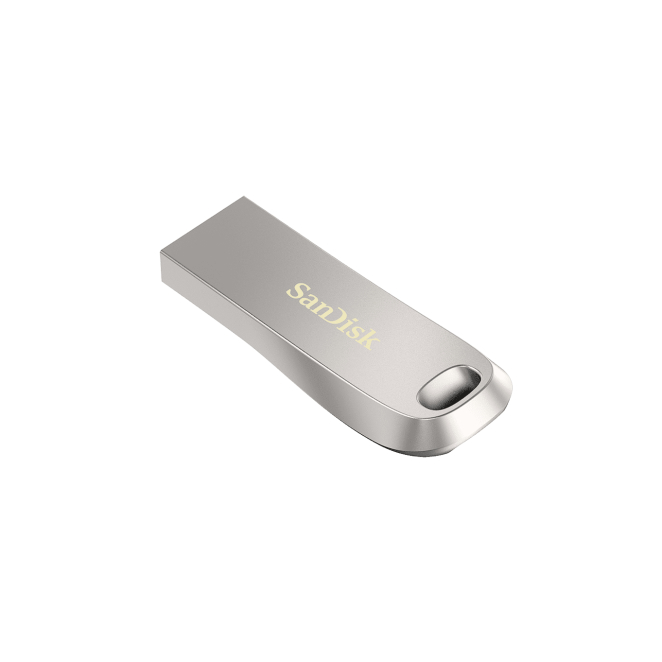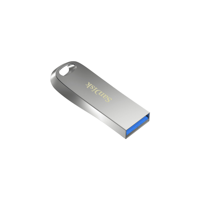 Imagen de la unidad flash USB SanDisk Ultra Luxe con 512 GB de capacidad, conector USB tipo A 3.2 Gen 1 en color plata. SKU: SDCZ74-512G-G46