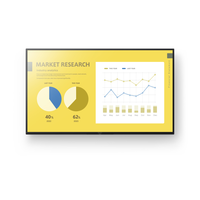 La Sony FW-43EZ20L ofrece múltiples beneficios que la convierten en una elección ideal para señalización digital. Su resolución 4K Ultra HD proporciona una claridad y detalle impresionantes, mientras que la luminosidad de 350 cd/m² permite una visibilidad excelente incluso en entornos bien iluminados. Con su diseño plano y elegante, encaja perfectamente en diversos espacios comerciales. La conectividad Wifi y Ethernet aseguran una integración fácil en cualquier red, y el sistema operativo Android brinda acceso a un amplio rango de aplicaciones.
