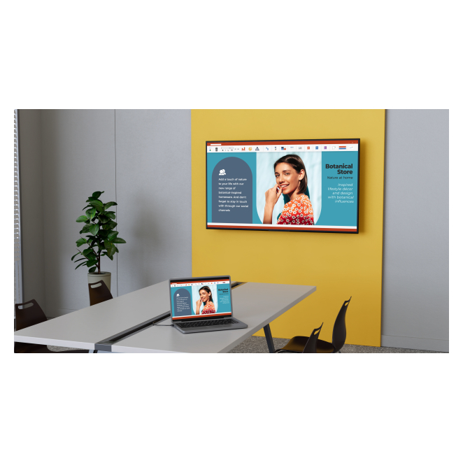 Con Wifi, Ethernet y múltiples puertos HDMI y USB, tendrás toda la flexibilidad que necesitas para integrar la pantalla en tu red.