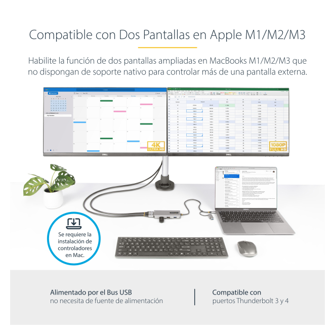 Los puertos HDMI dobles admiten resoluciones de hasta 4K, permitiendo trabajar con múltiples monitores eficientemente.