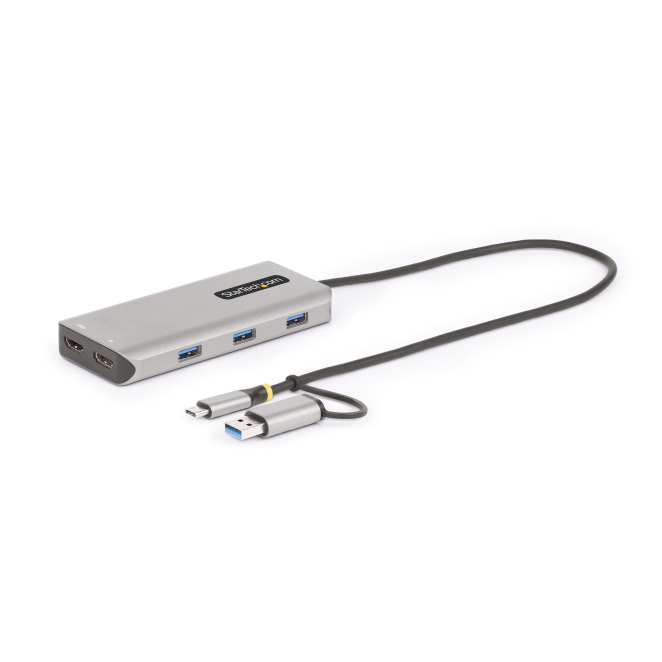 StarTech.com Adaptador Multipuertos USB-C – HDMI Doble (4K30Hz/1080p60Hz) – Hub Ladrón 3x USB-A – Mini Docking Station de Viajes – Docking Station USB Tipo C con Cable Integrado de 40cm