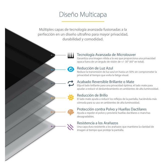 Limita los ángulos de visión, manteniendo sus datos confidenciales.