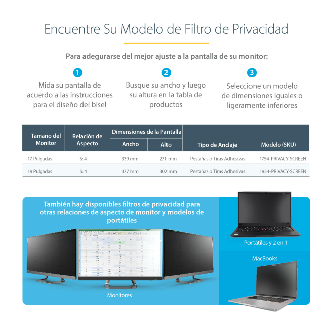Aquí encontrarás respuestas a las preguntas más comunes sobre el Filtro de Privacidad StarTech.com de 19 pulgadas.