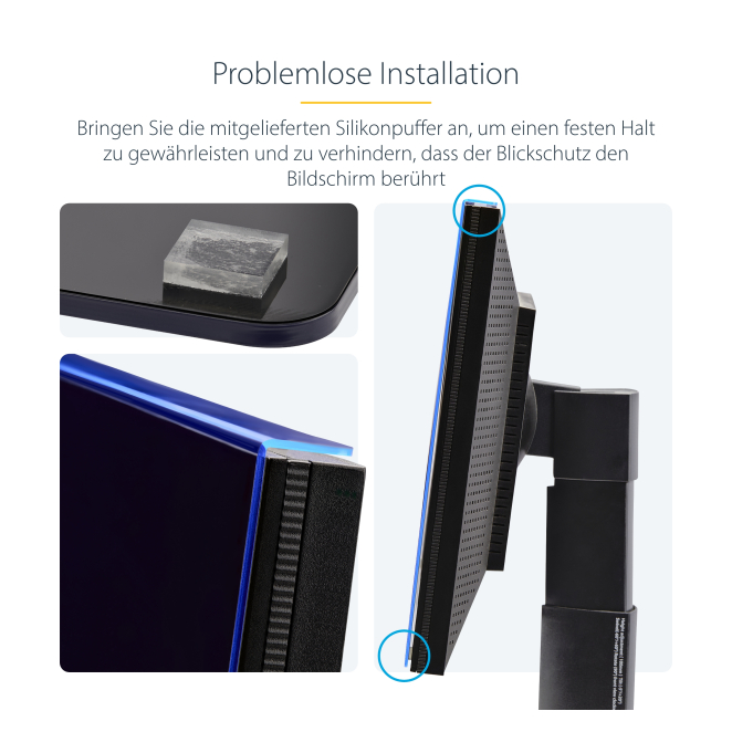 El StarTech.com Filtro de Privacidad para Monitor de 24 pulgadas es fácil de usar e instalar. Gracias a su diseño colgante, puede montarse y desmontarse rápidamente sin necesidad de herramientas adicionales. Los topes de silicona aseguran que el filtro permanezca en su lugar sin deslizarse, incluso durante el uso prolongado. Además, la reducción de la luz azul mejora significativamente el confort visual, permitiendo trabajar durante más tiempo sin experimentar fatiga ocular. La brillante superficie del filtro también garantiza una imagen nítida y clara, mejorando la usabilidad y la eficiencia en el trabajo diario.