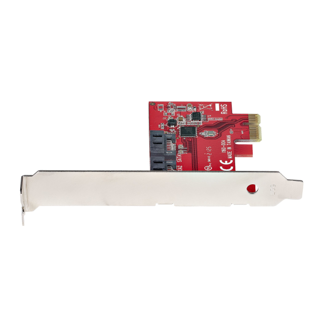 Imagen de la StarTech.com Tarjeta PCIe SATA, una tarjeta controladora PCI Express de perfil completo o bajo con dos puertos SATA de 6Gbps, modelo 2P6G-PCIE-SATA-CARD.