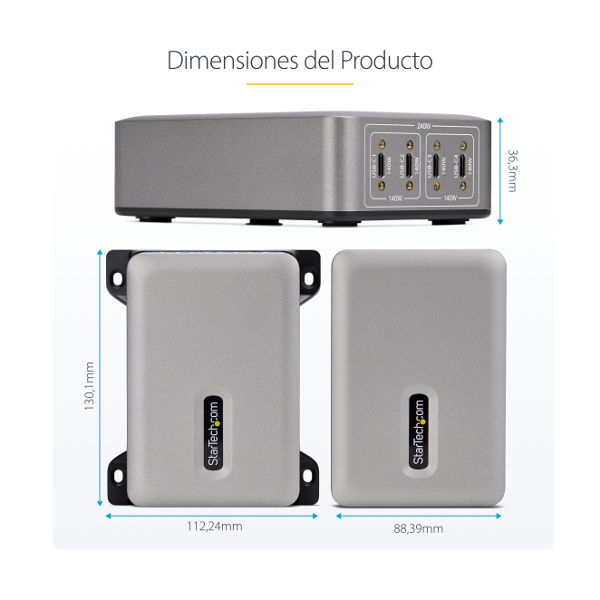 Cargador USB-C de 4 puertos StarTech.com con un puerto de 140W EPR, soporte PD 3.1 y tornillos de fijación, SKU 424DEU-USB-C-CHARGER.