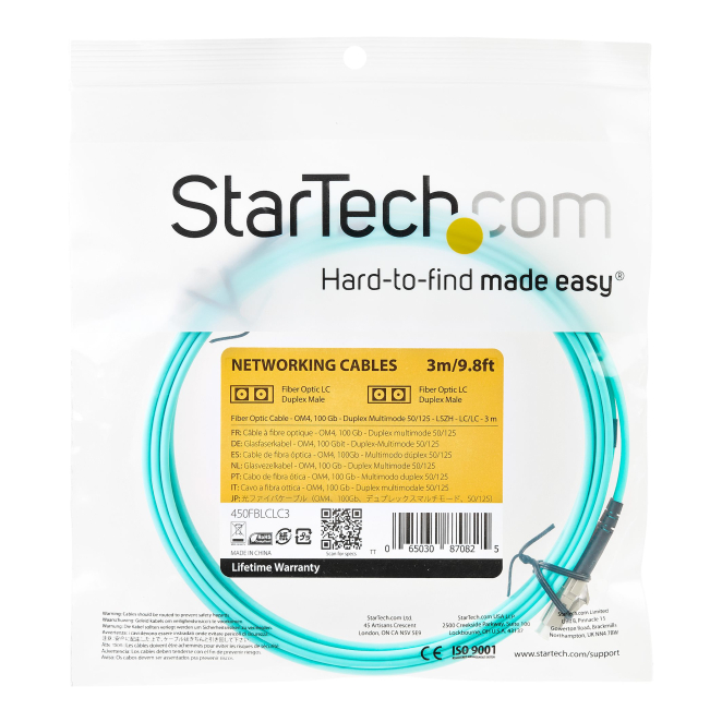 StarTech.com cable de fibra óptica multimodo LC/UPC a LC/UPC OM4 de 3 metros, 50/125µm, para redes de 100G, baja pérdida de inserción