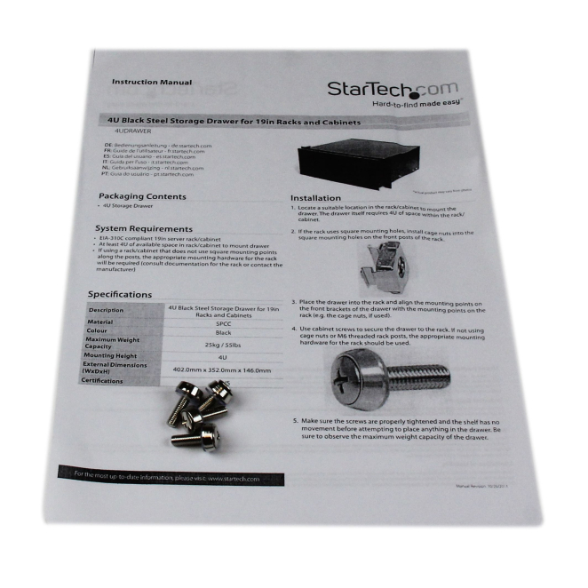 StarTech.com cajón metálico de 4U en acero negro de 19 pulgadas para montar en armario rack, SKU 4UDRAWER